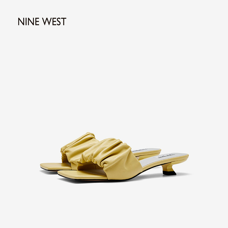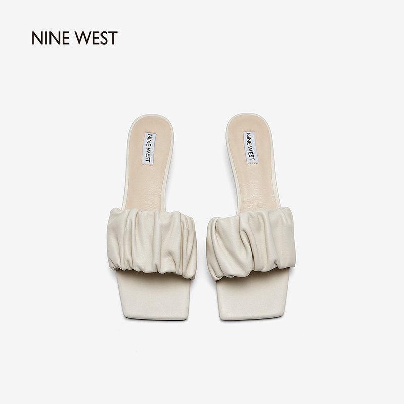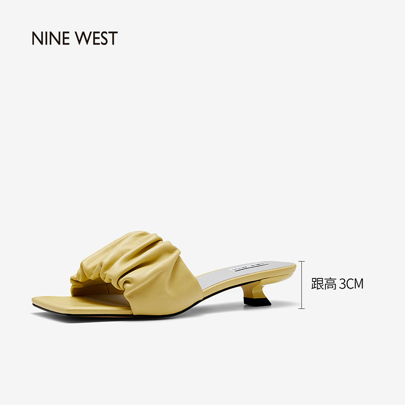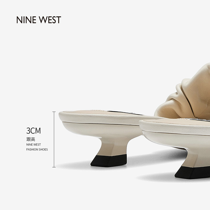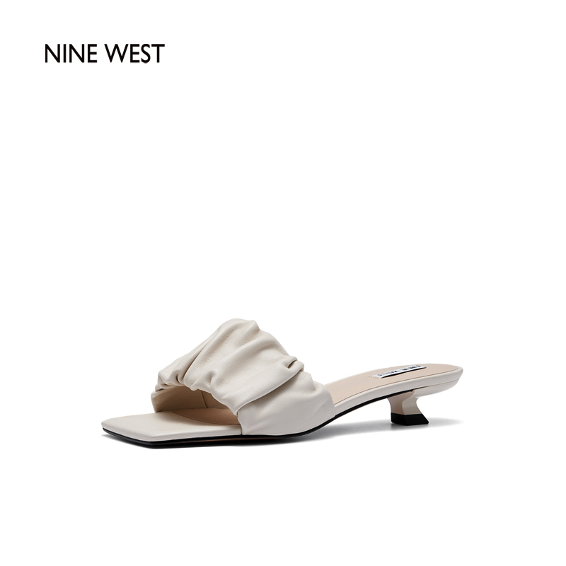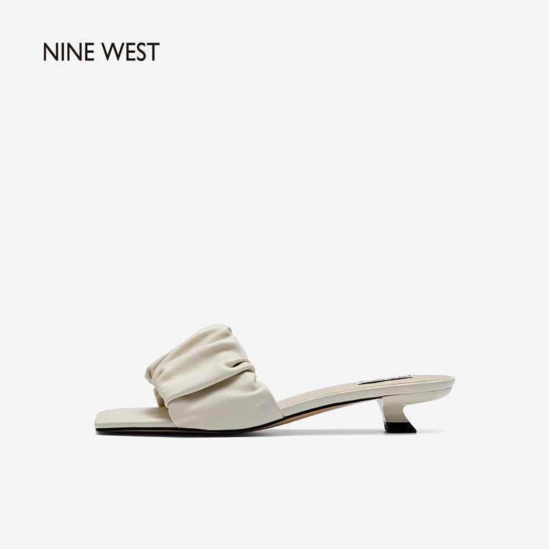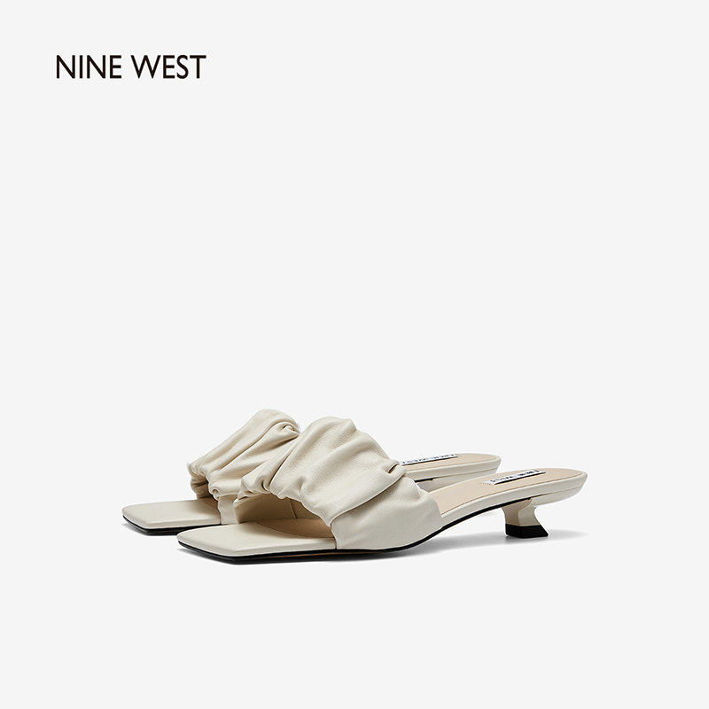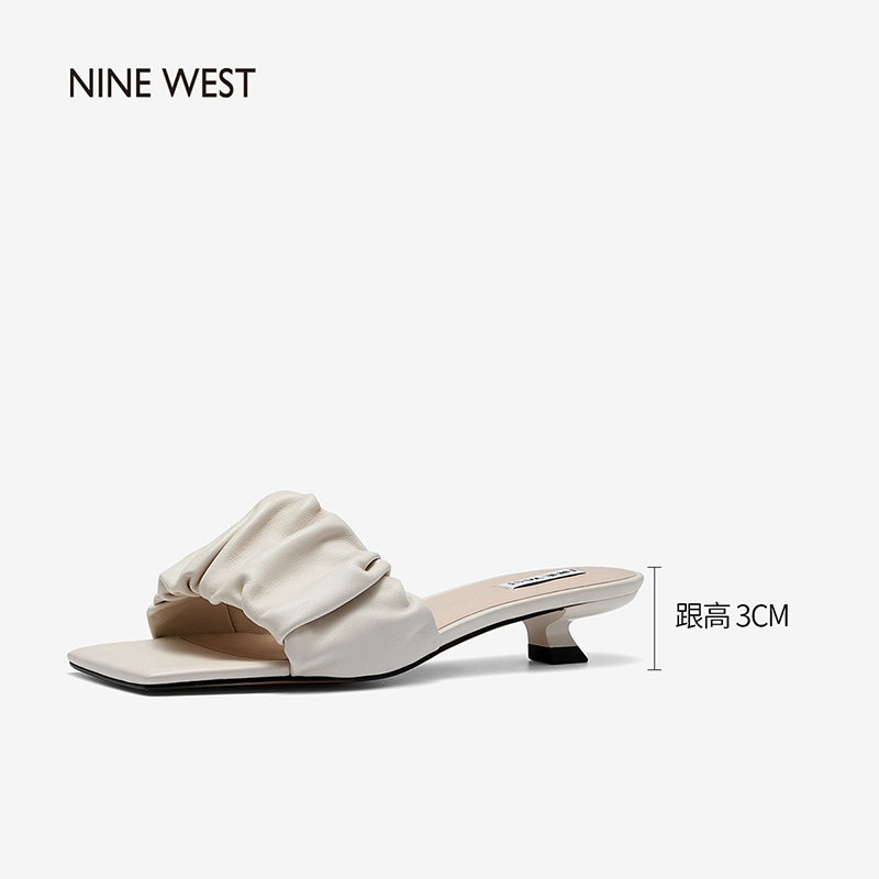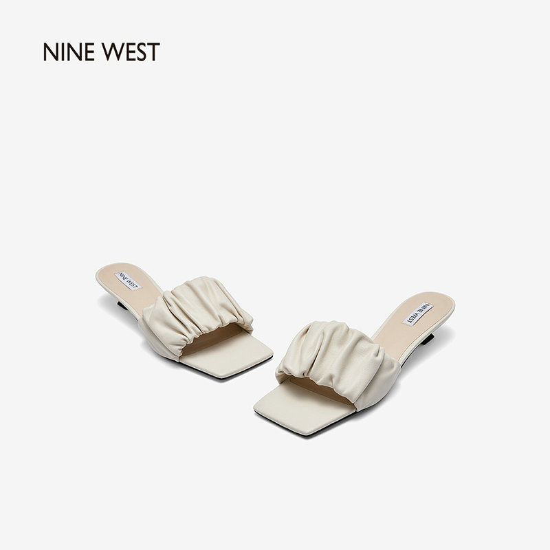 Nine West/玖熙2022年夏季新款中跟拖鞋方头细跟外穿露趾一字凉拖