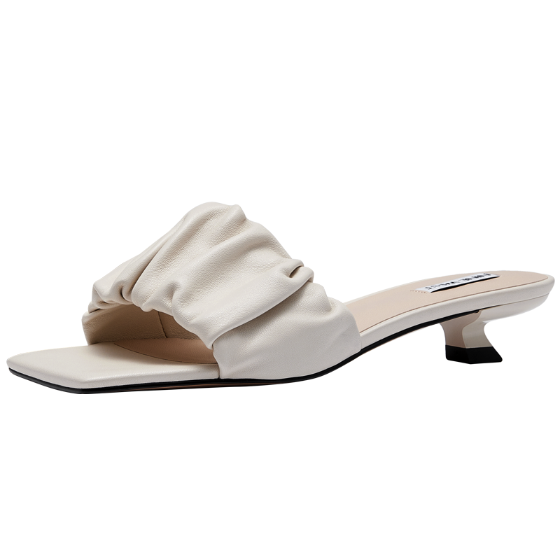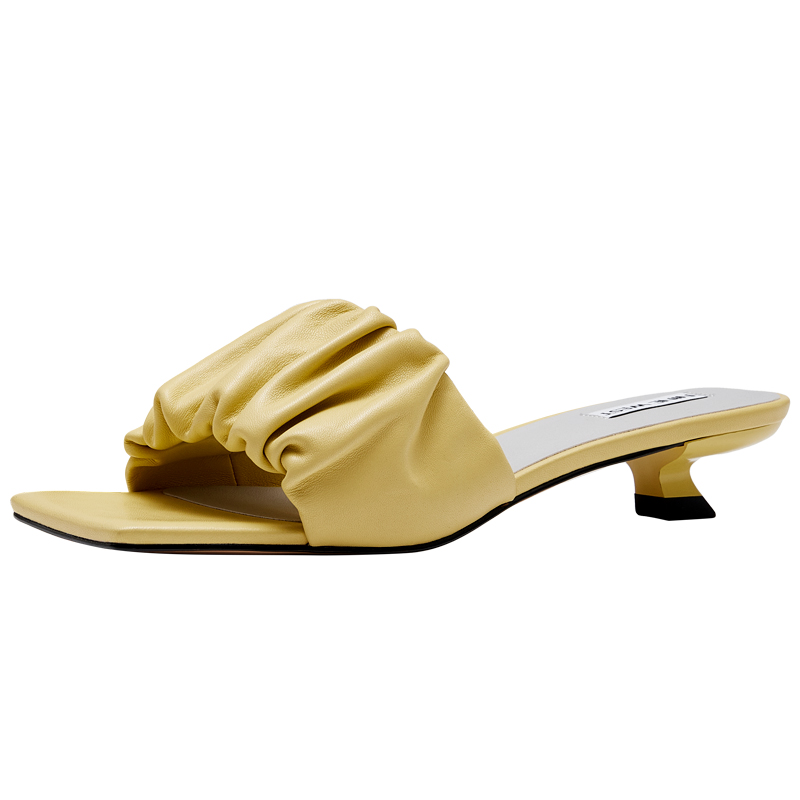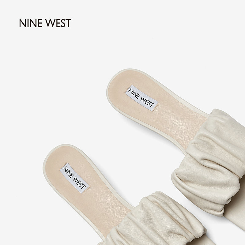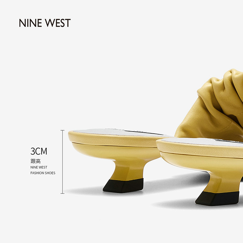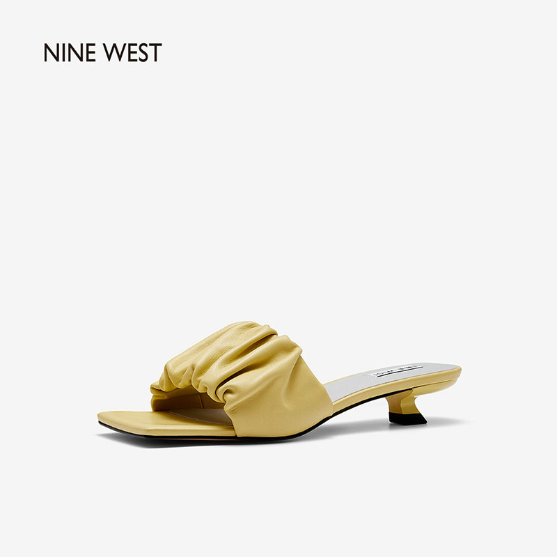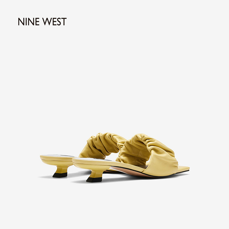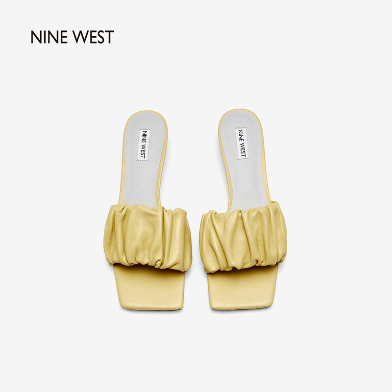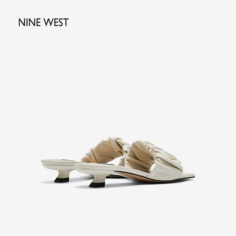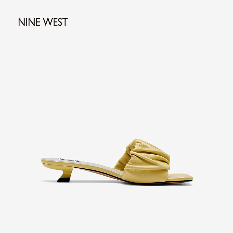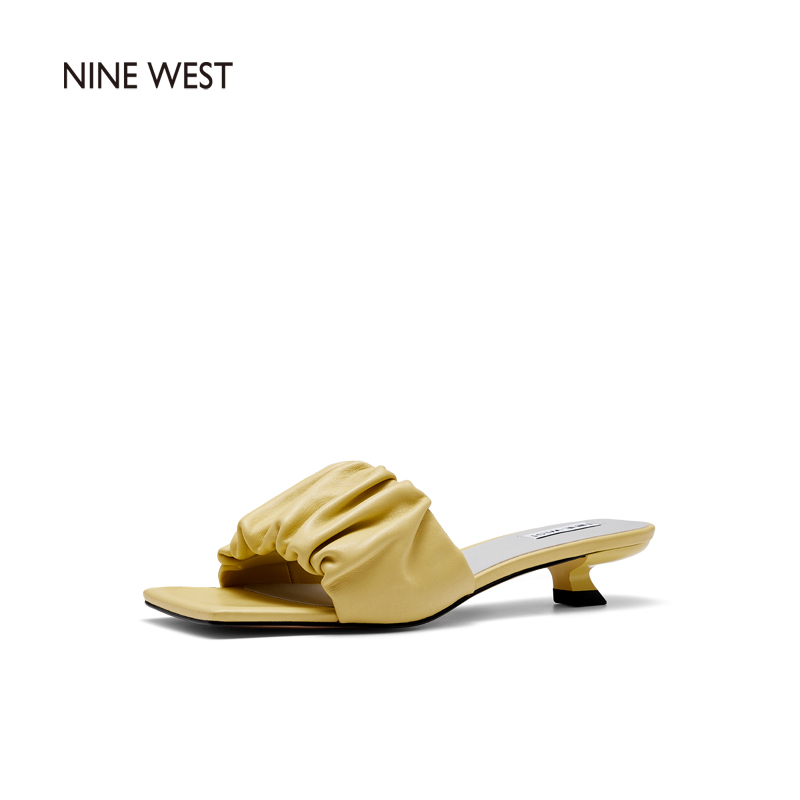 Nine West/玖熙2022年夏季新款中跟拖鞋方头细跟外穿露趾一字凉拖