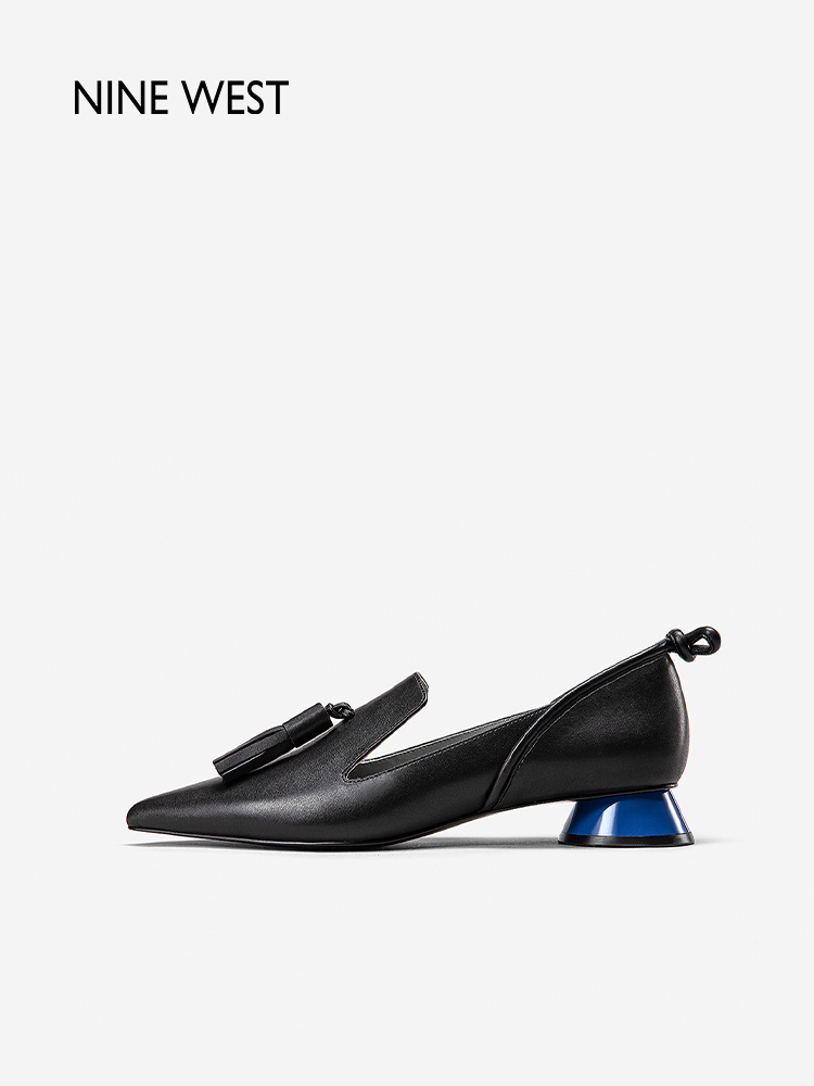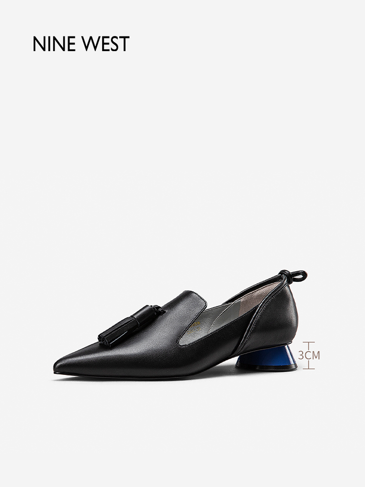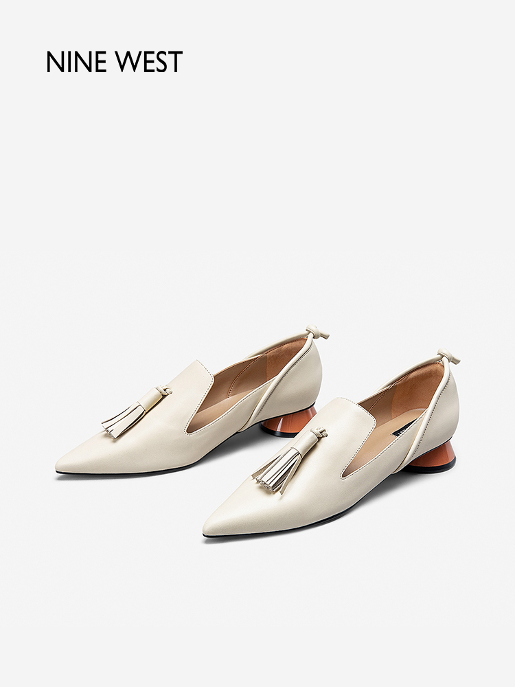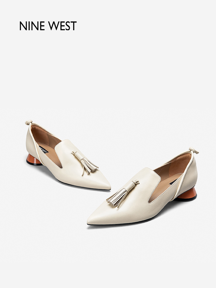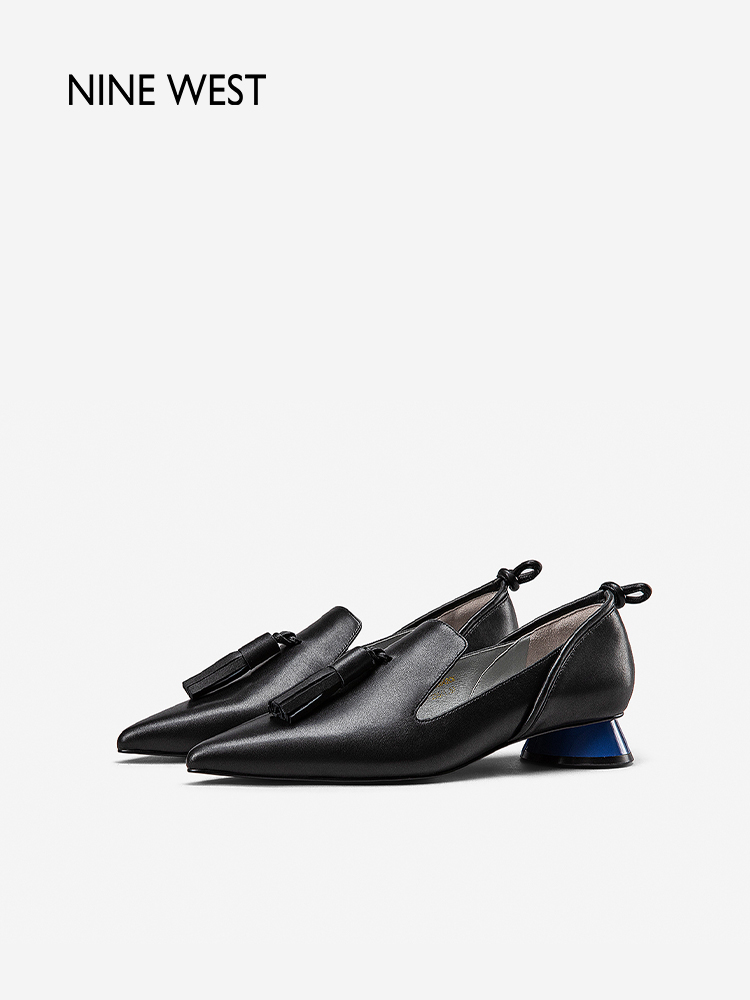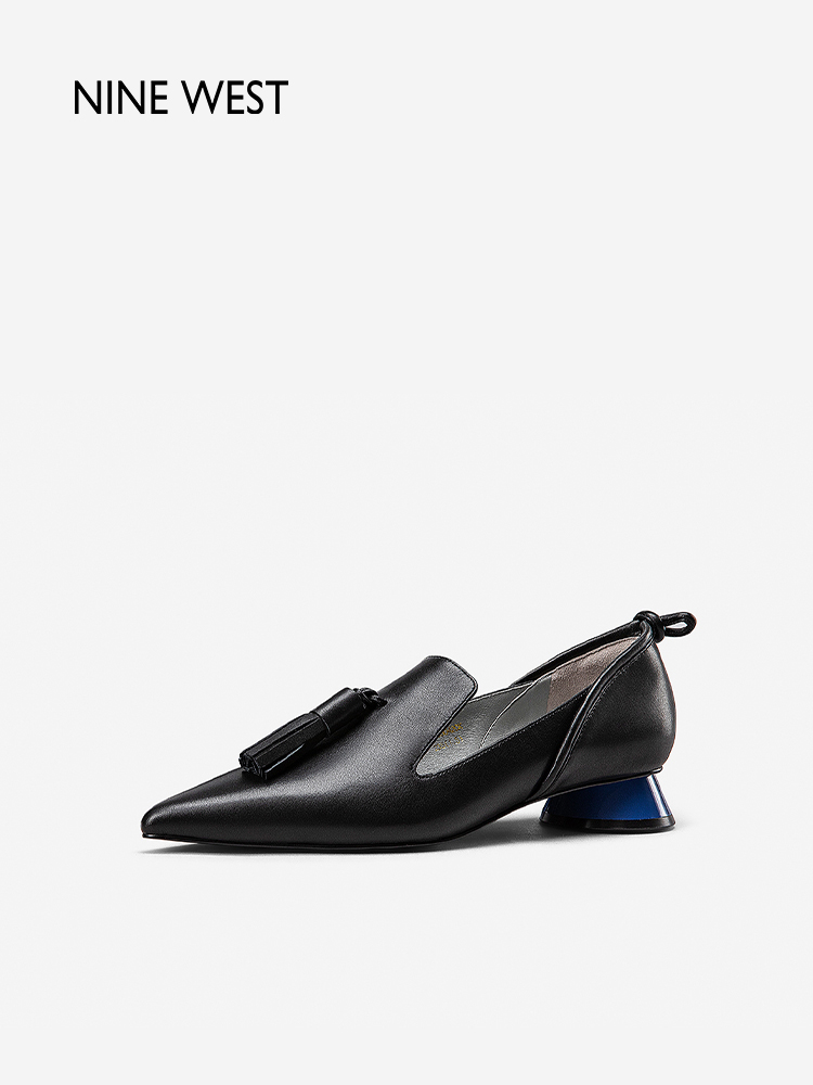 Nine West/玖熙流苏乐福鞋女2022年秋季新款一脚蹬真皮设计感单鞋