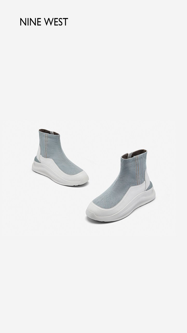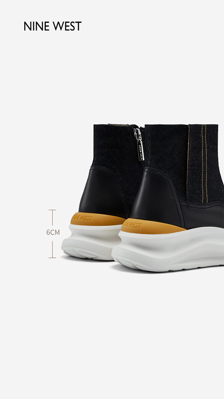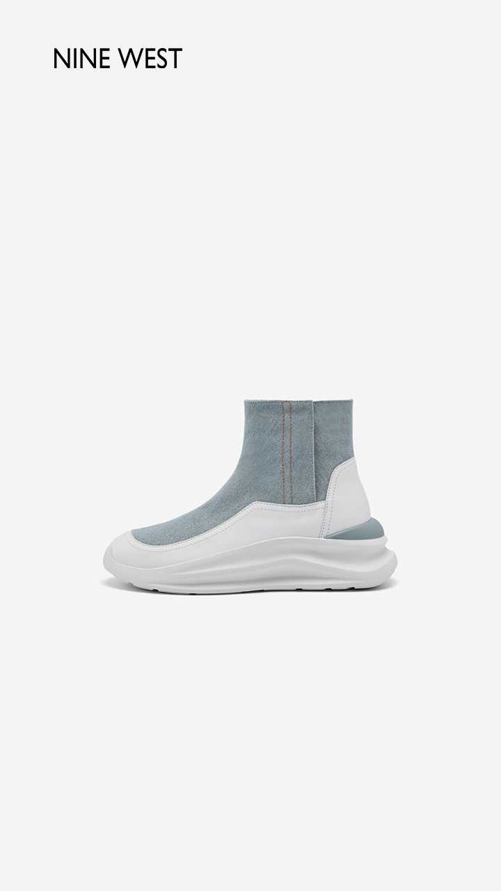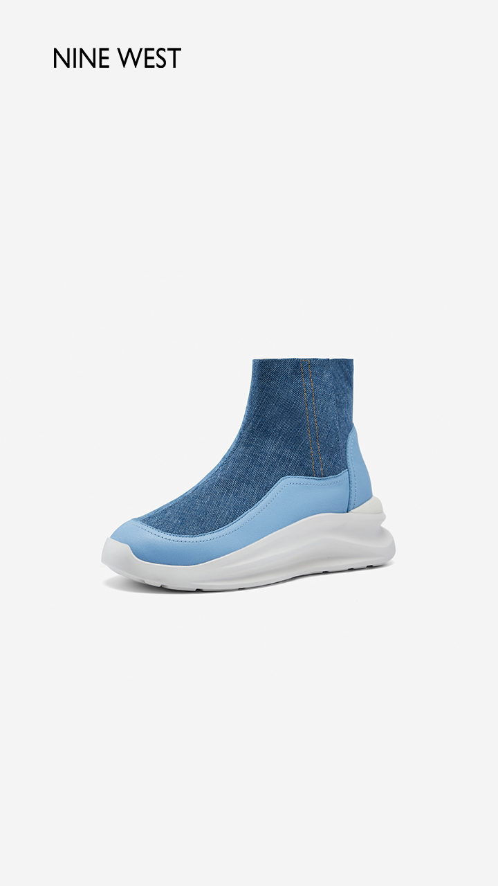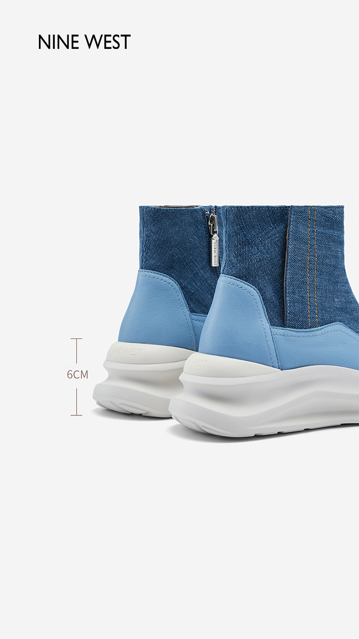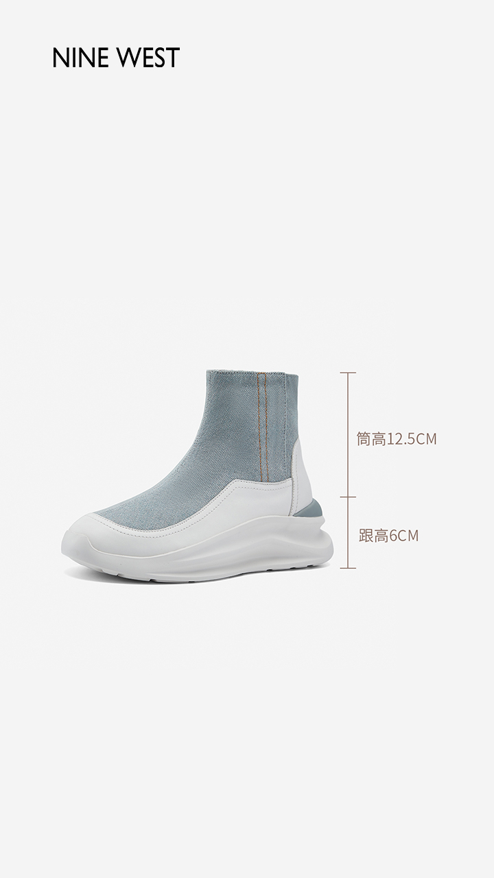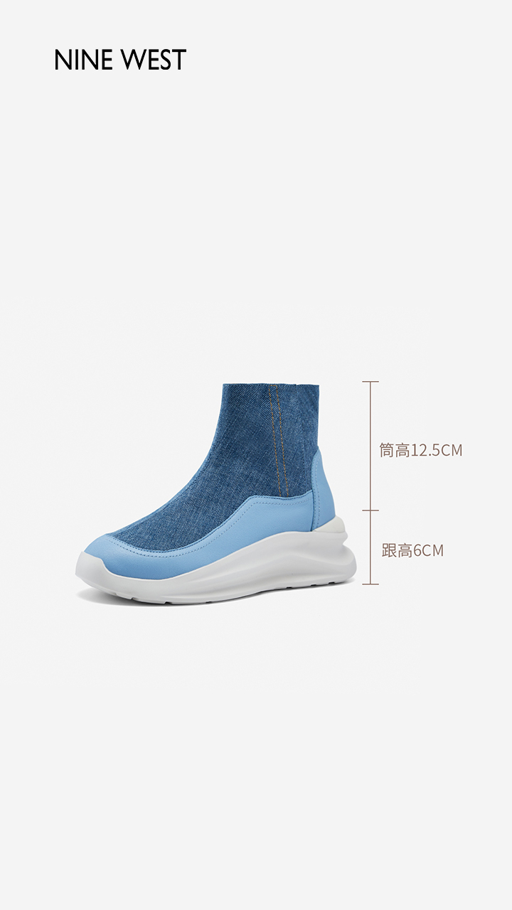 冰川系列Nine West/玖熙2023秋冬新款厚底袜靴增高丹宁短靴瘦瘦靴