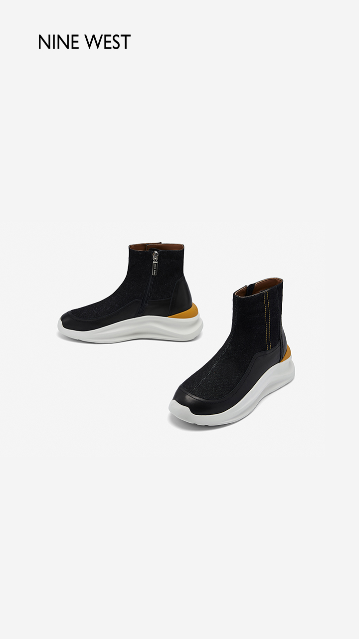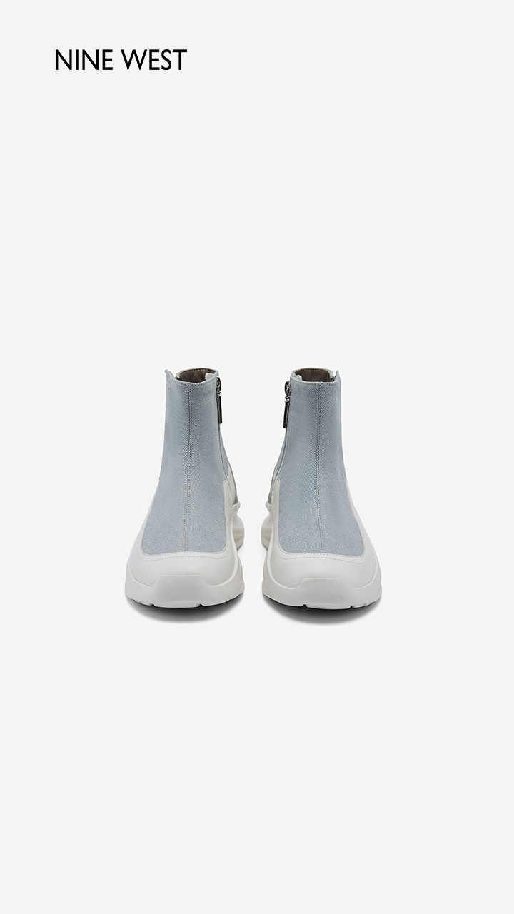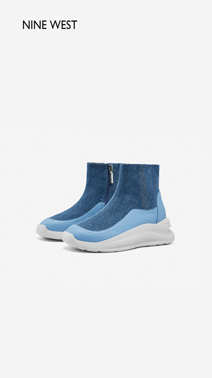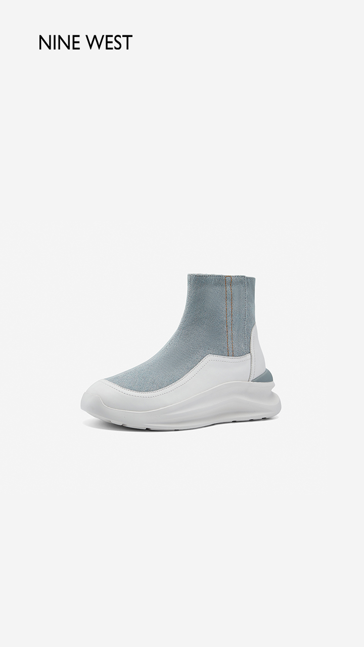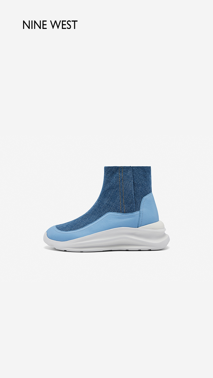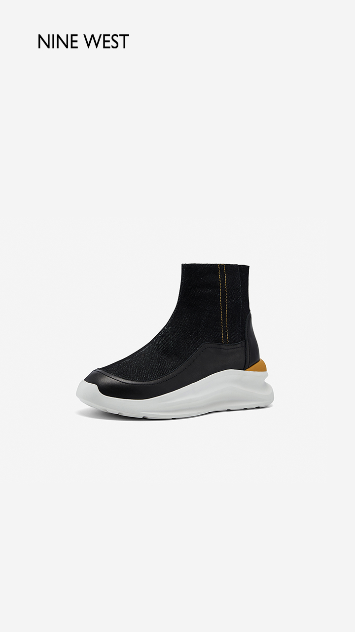 冰川系列Nine West/玖熙2023秋冬新款厚底袜靴增高丹宁短靴瘦瘦靴