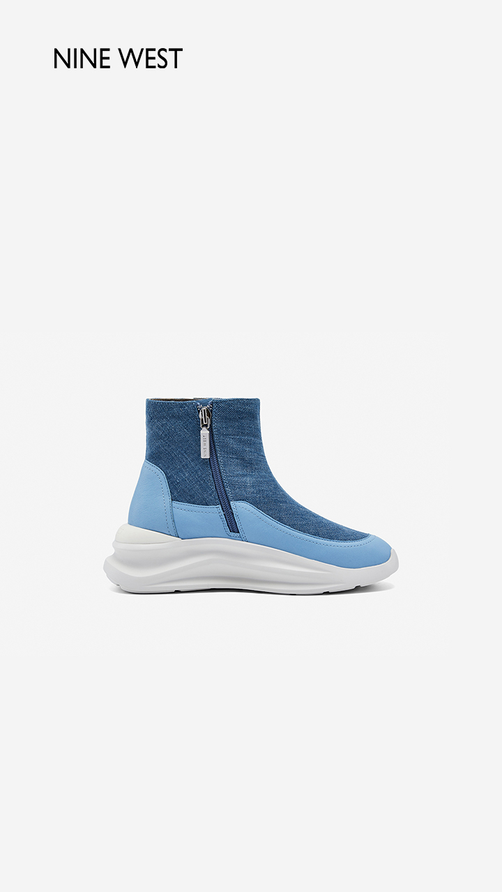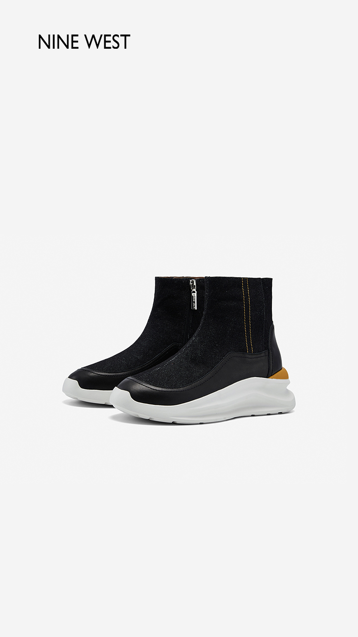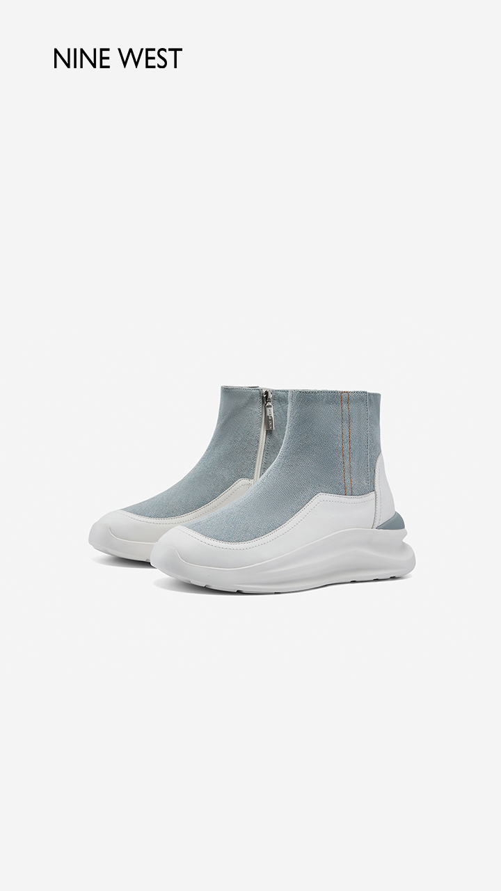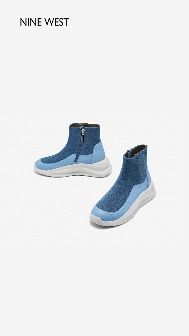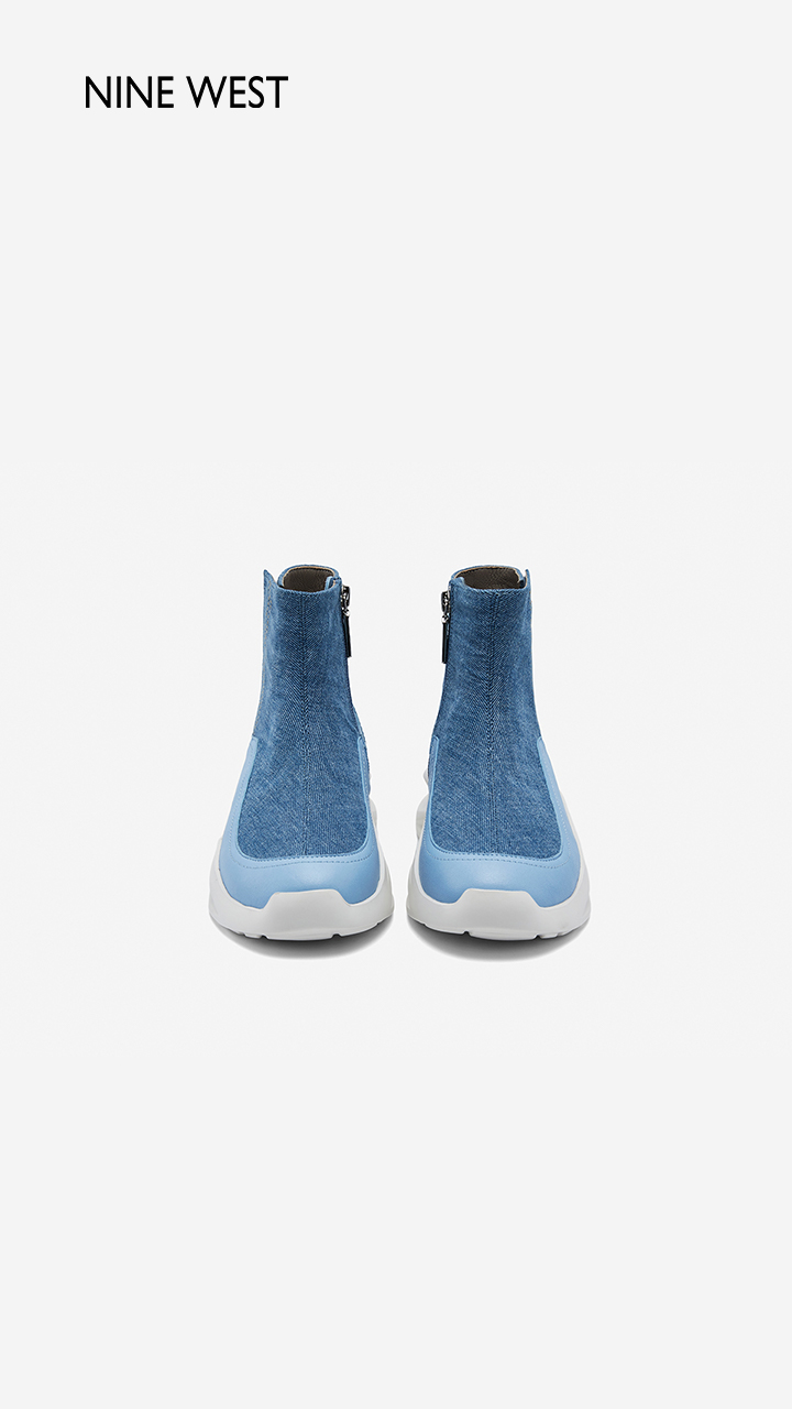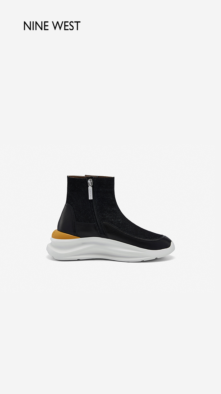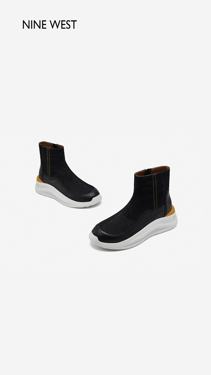 冰川系列Nine West/玖熙2023秋冬新款厚底袜靴增高丹宁短靴瘦瘦靴