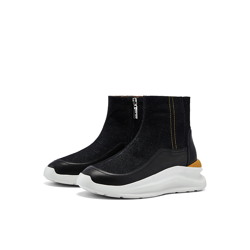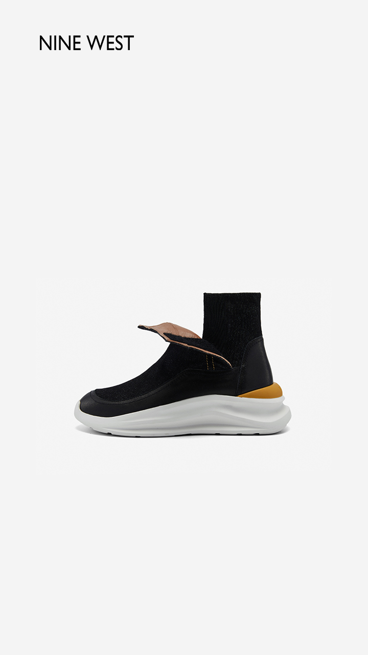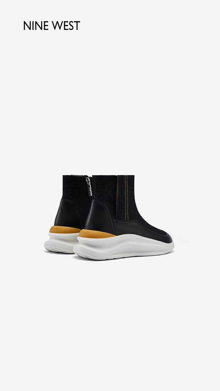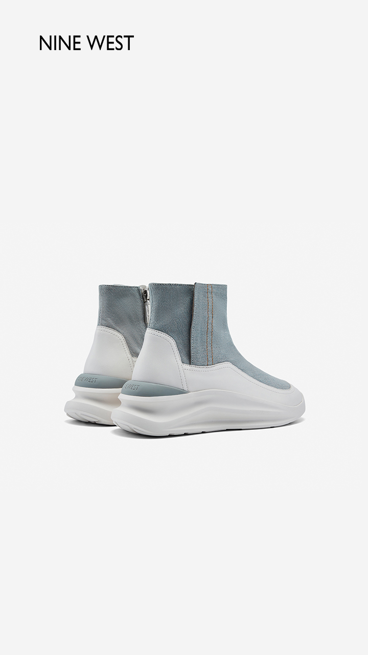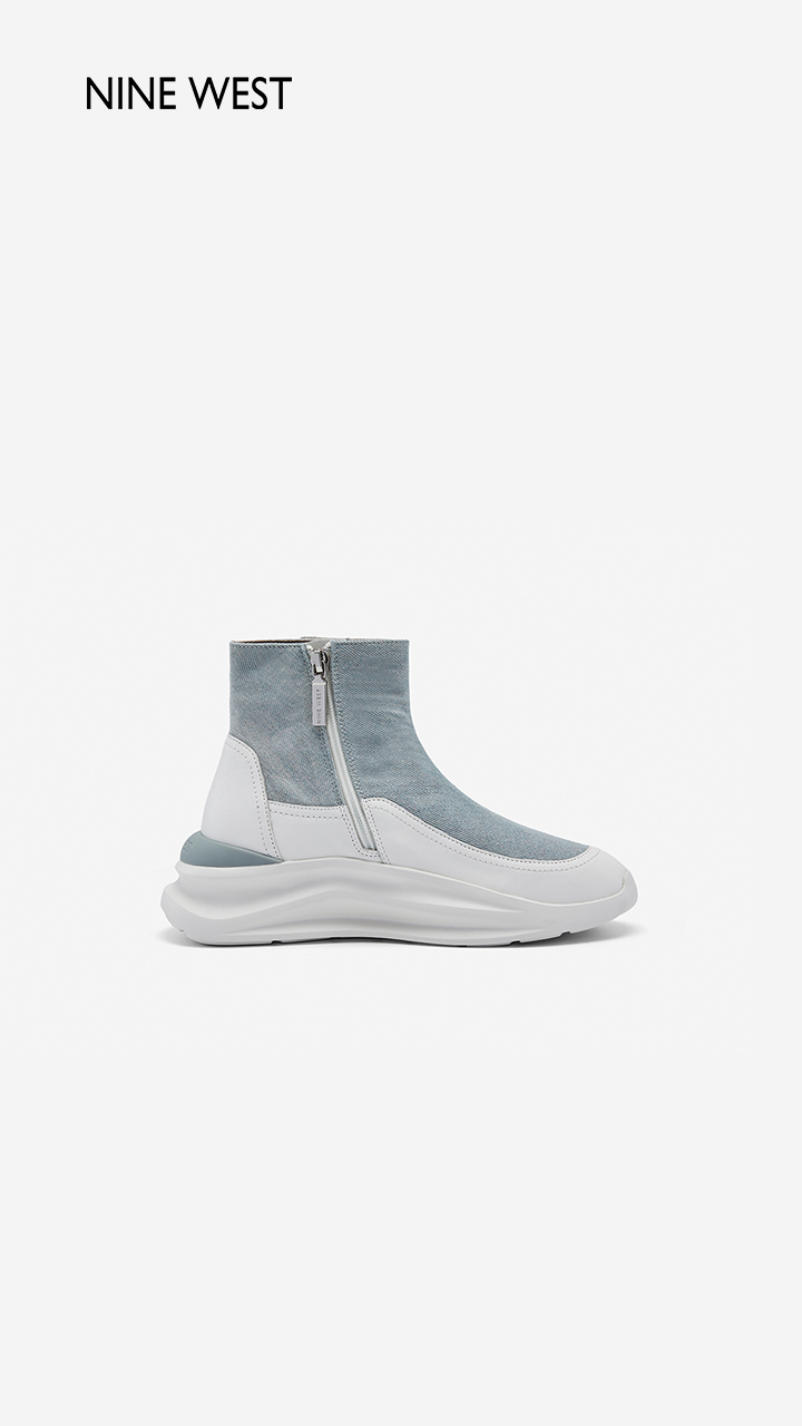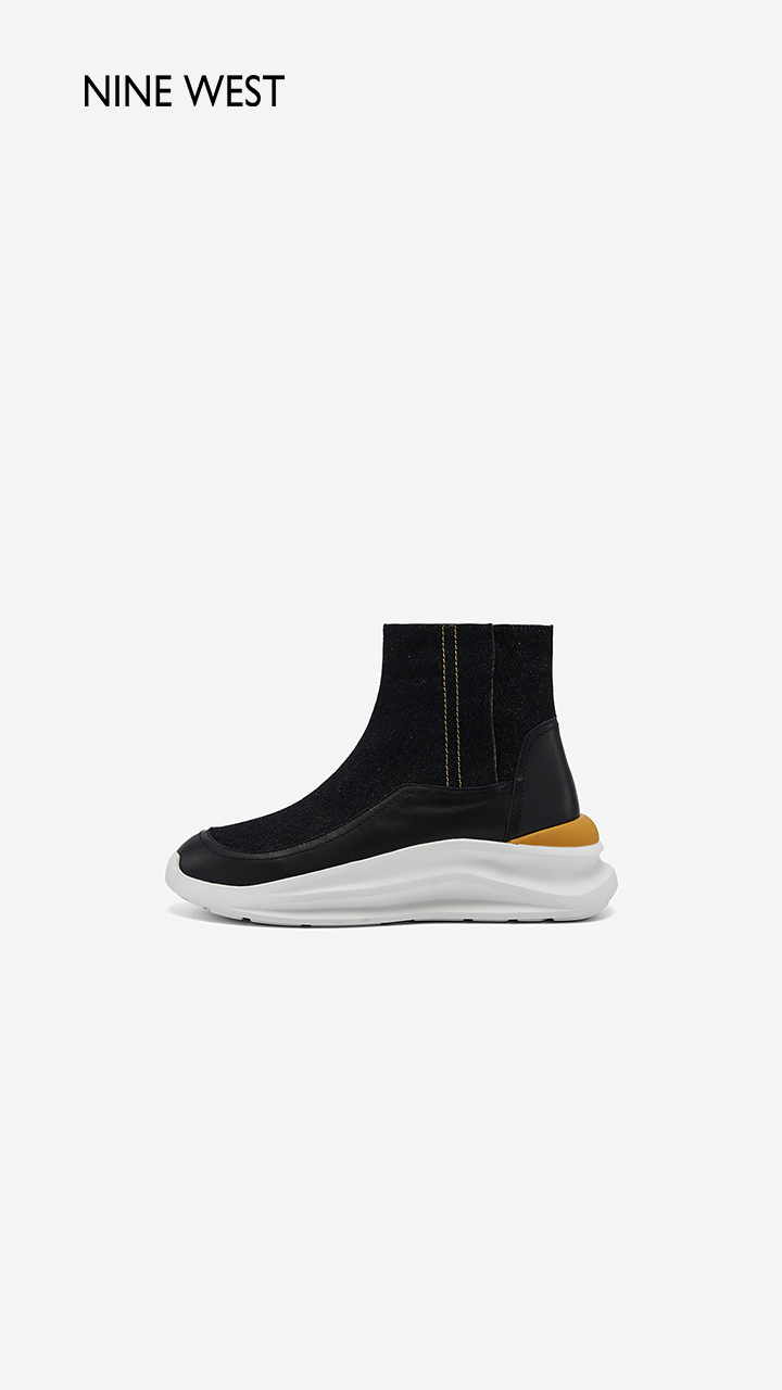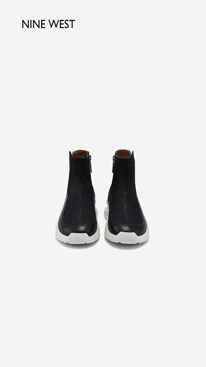 冰川系列Nine West/玖熙2023秋冬新款厚底袜靴增高丹宁短靴瘦瘦靴