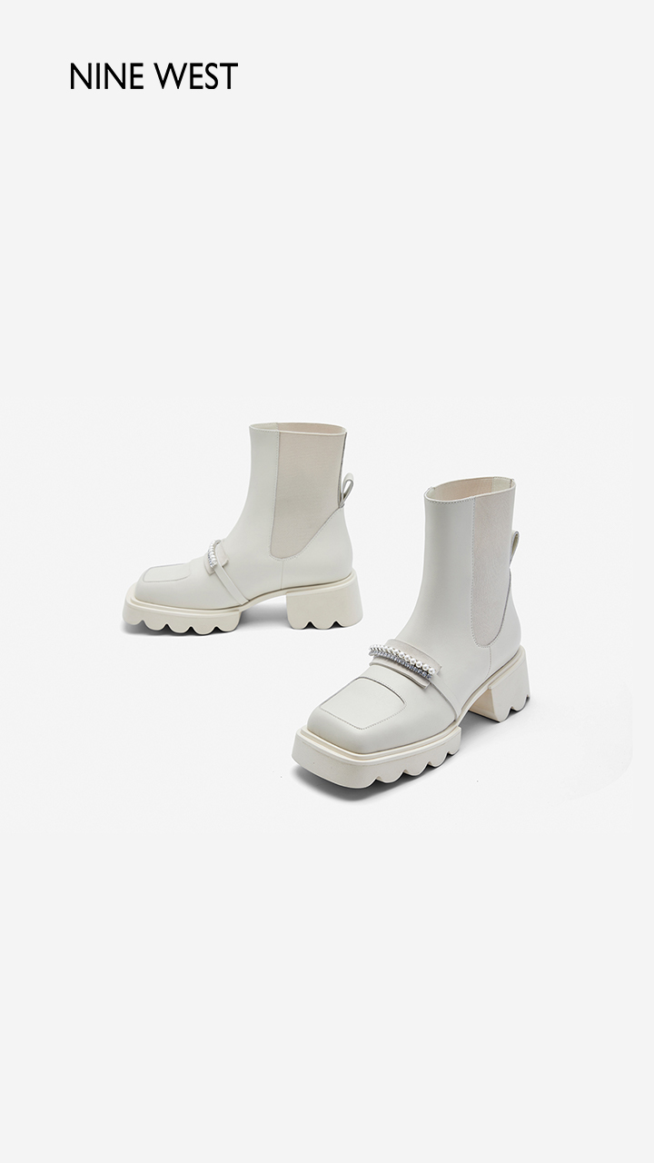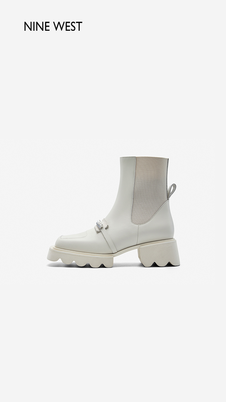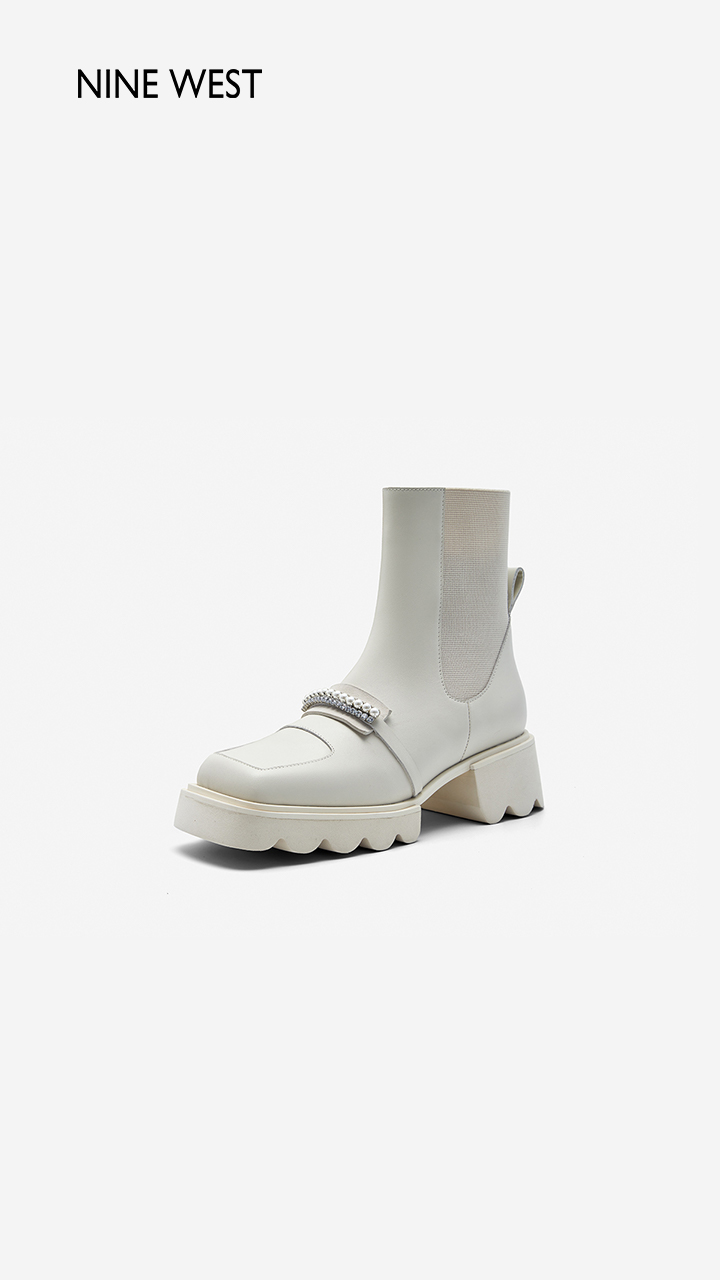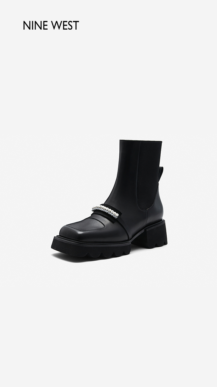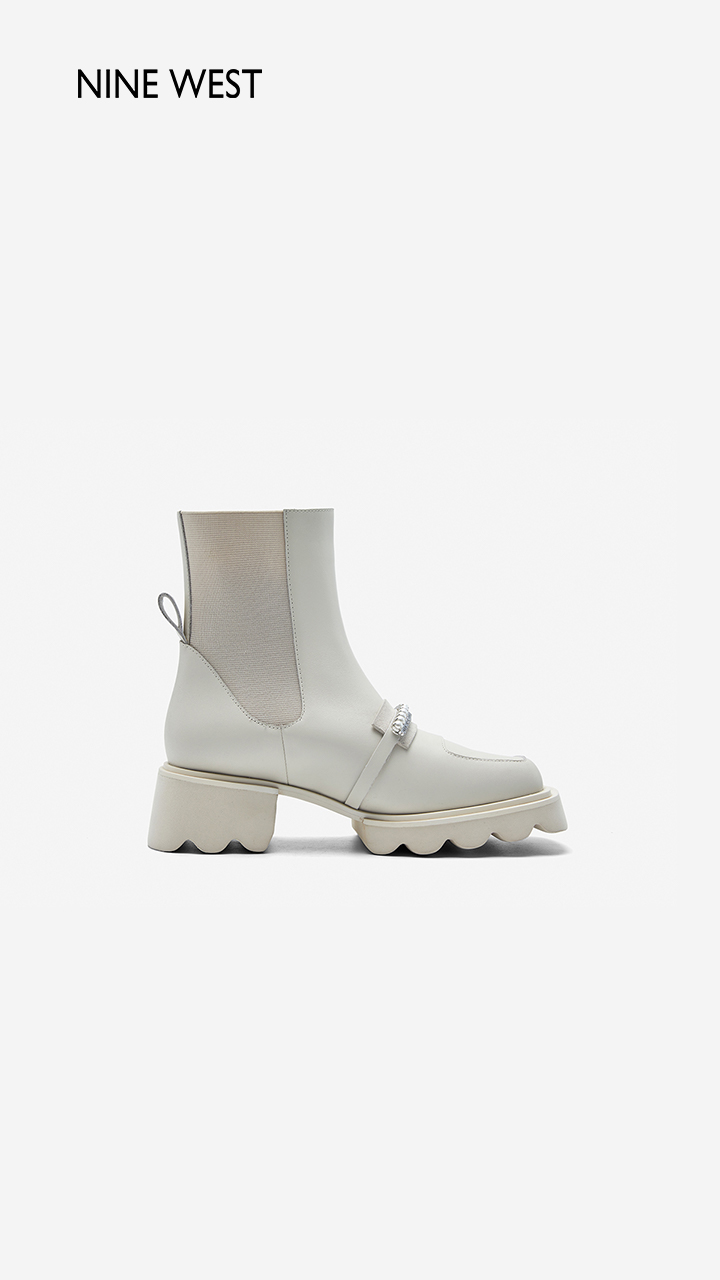 Nine West/玖熙珍钻小众甜酷短靴2023冬新款方头弹力厚底切尔西靴
