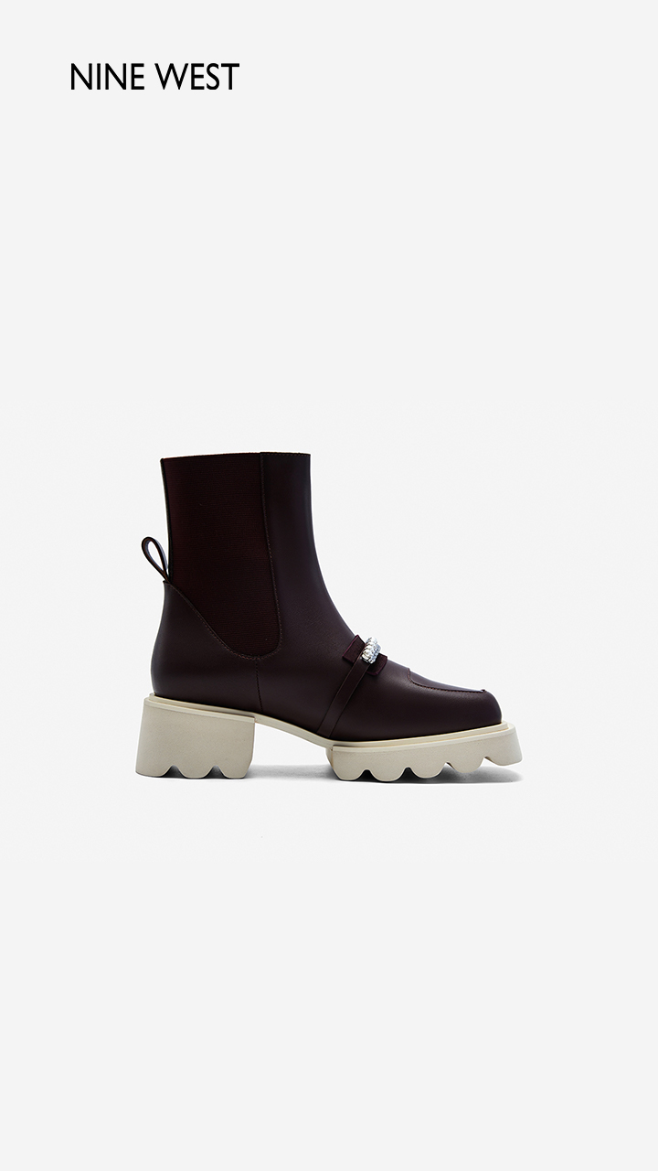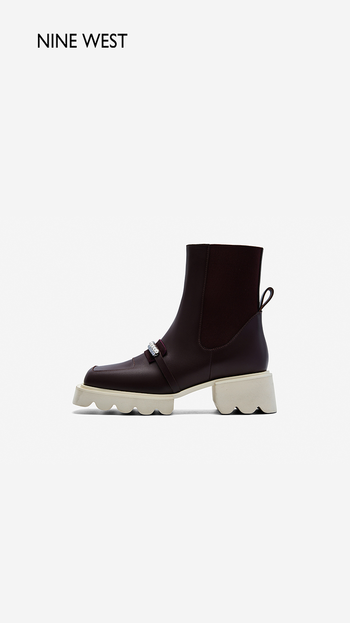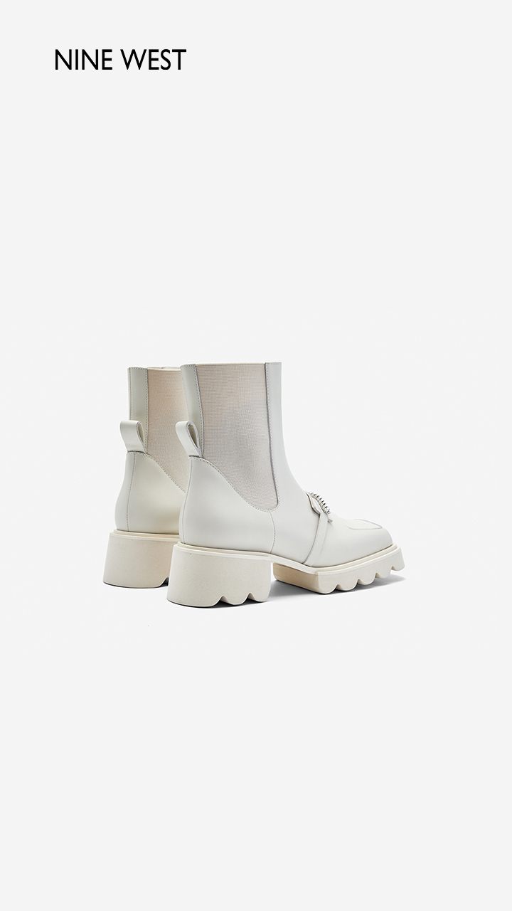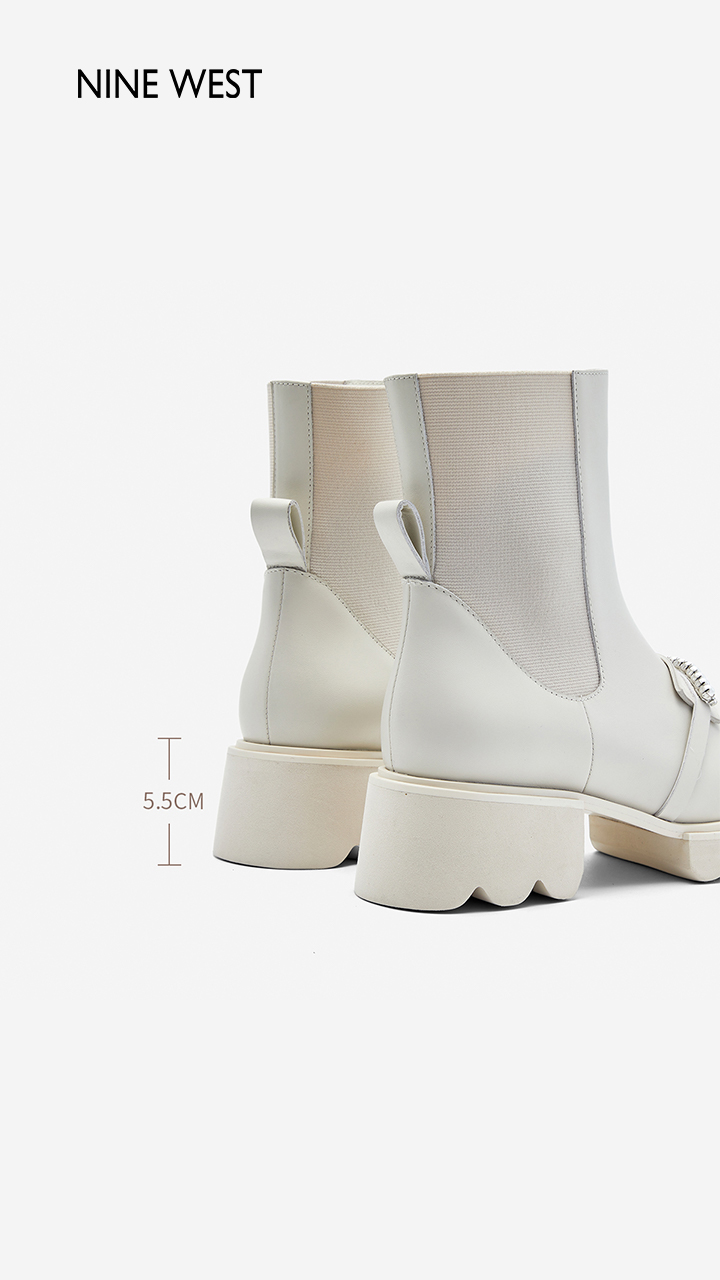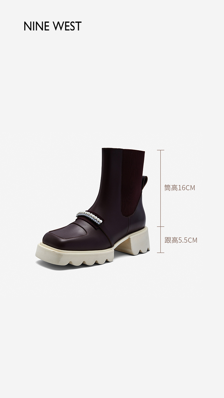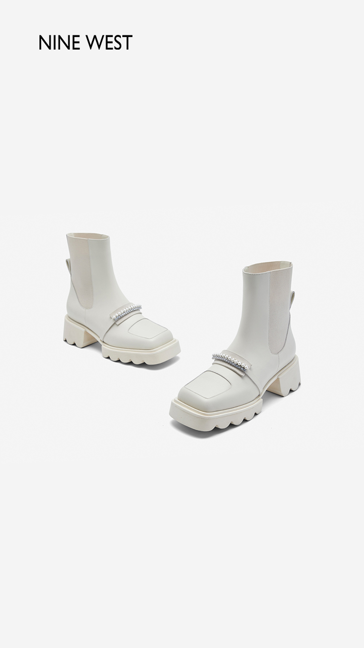 Nine West/玖熙珍钻小众甜酷短靴2023冬新款方头弹力厚底切尔西靴