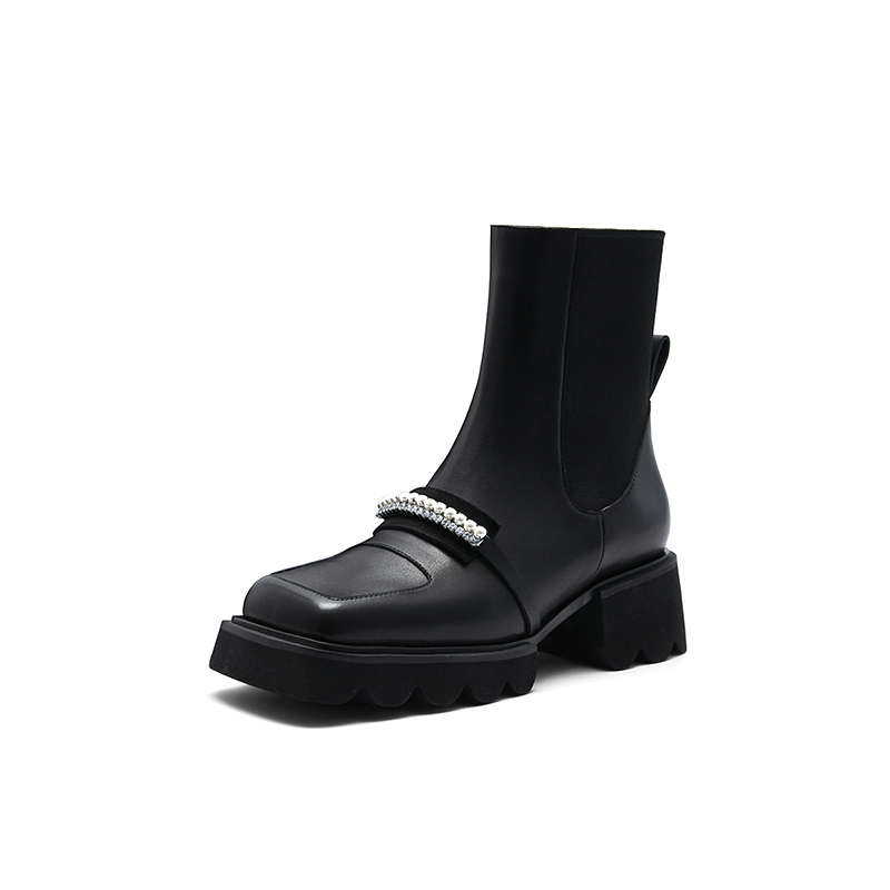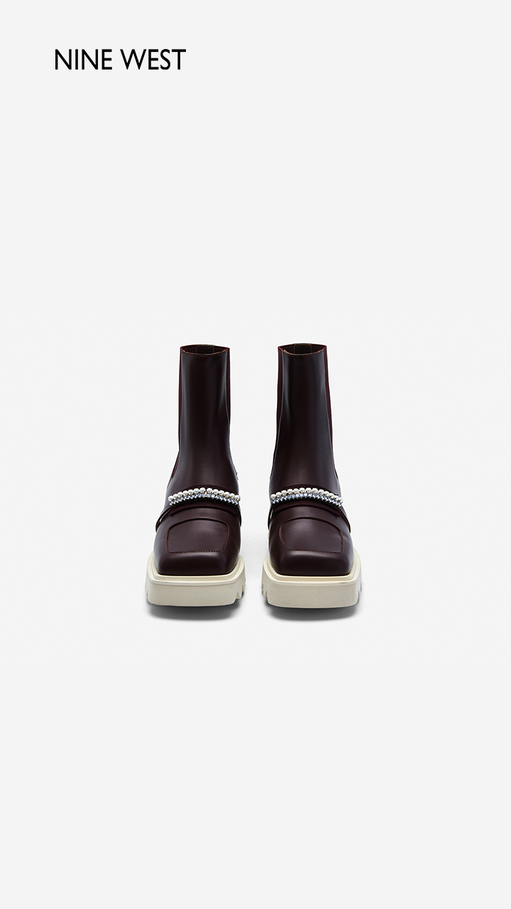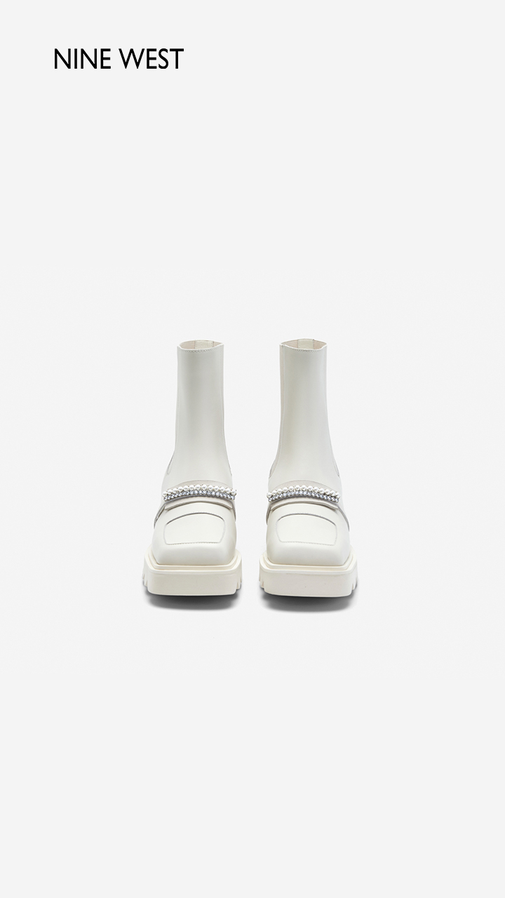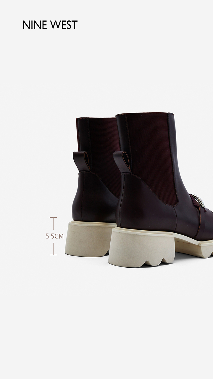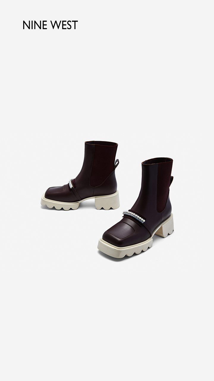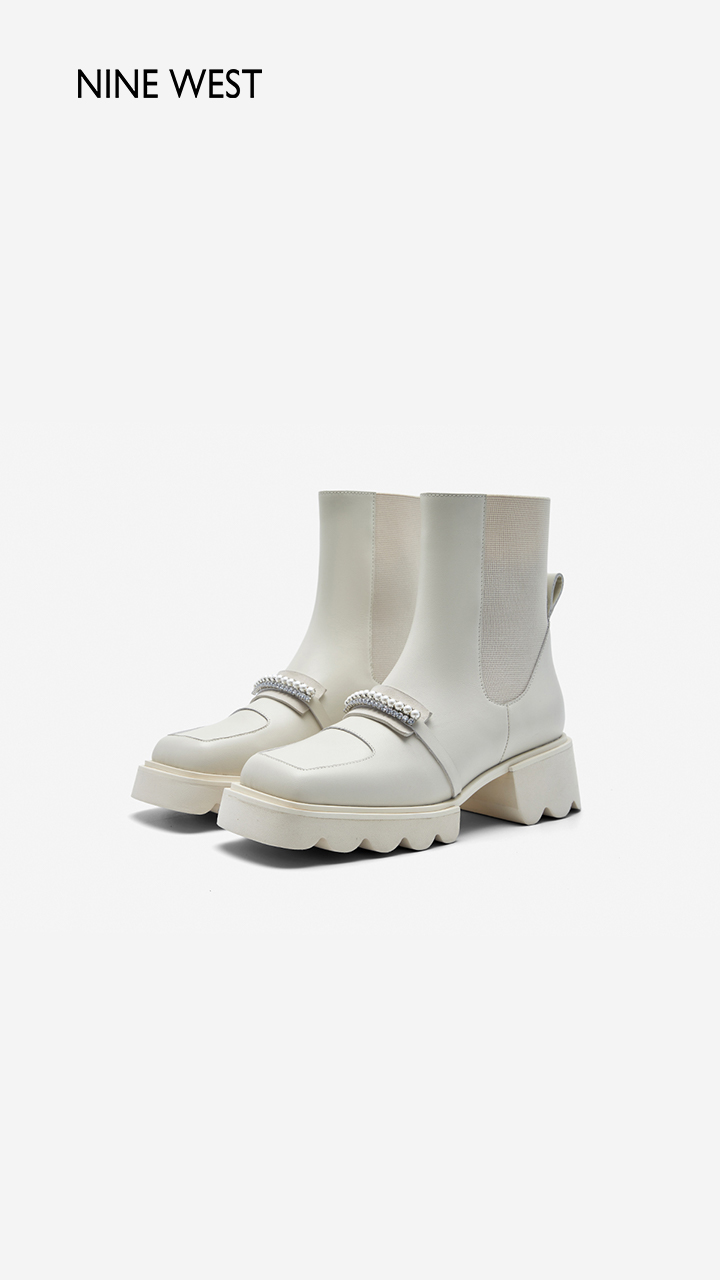 Nine West/玖熙珍钻小众甜酷短靴2023冬新款方头弹力厚底切尔西靴