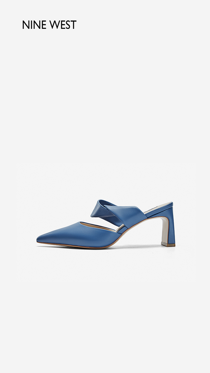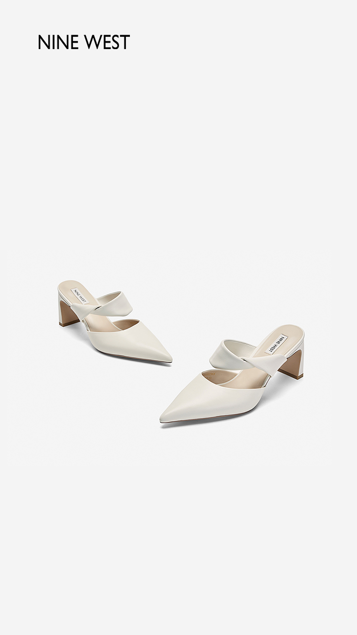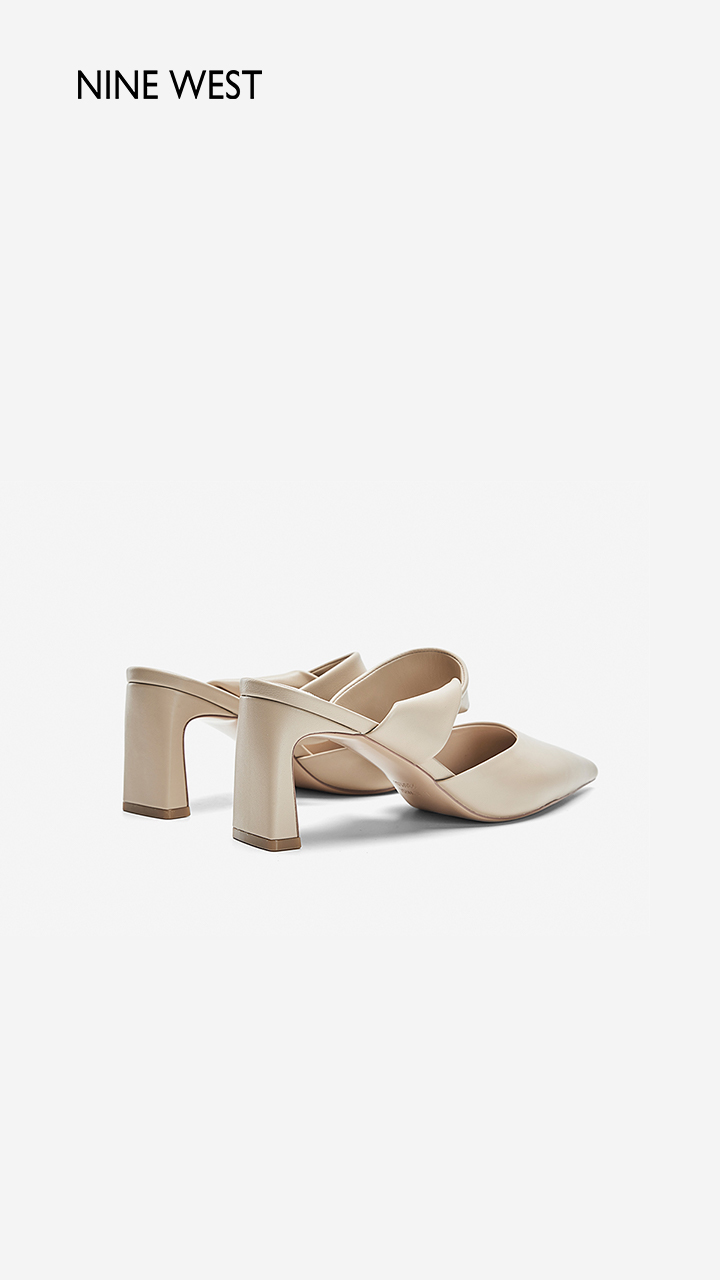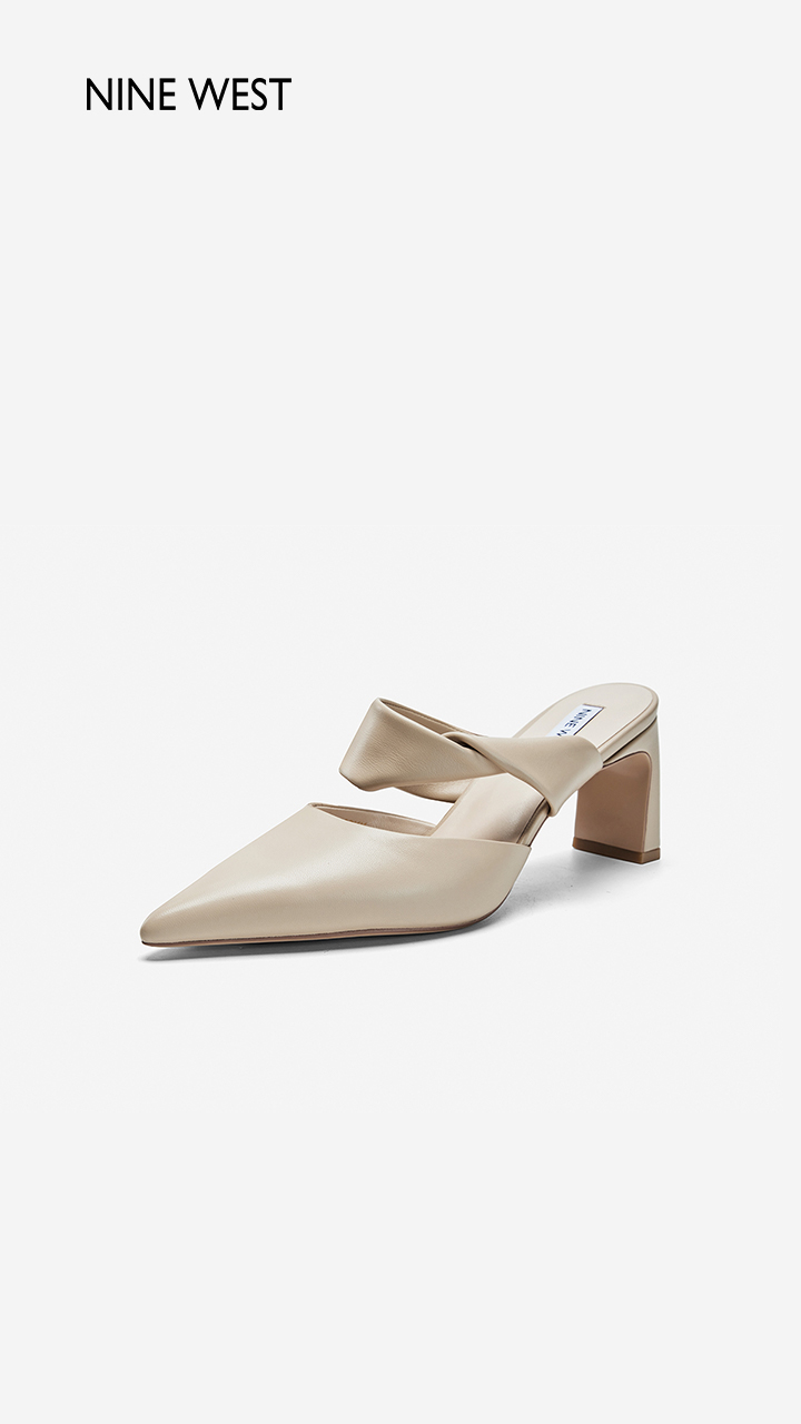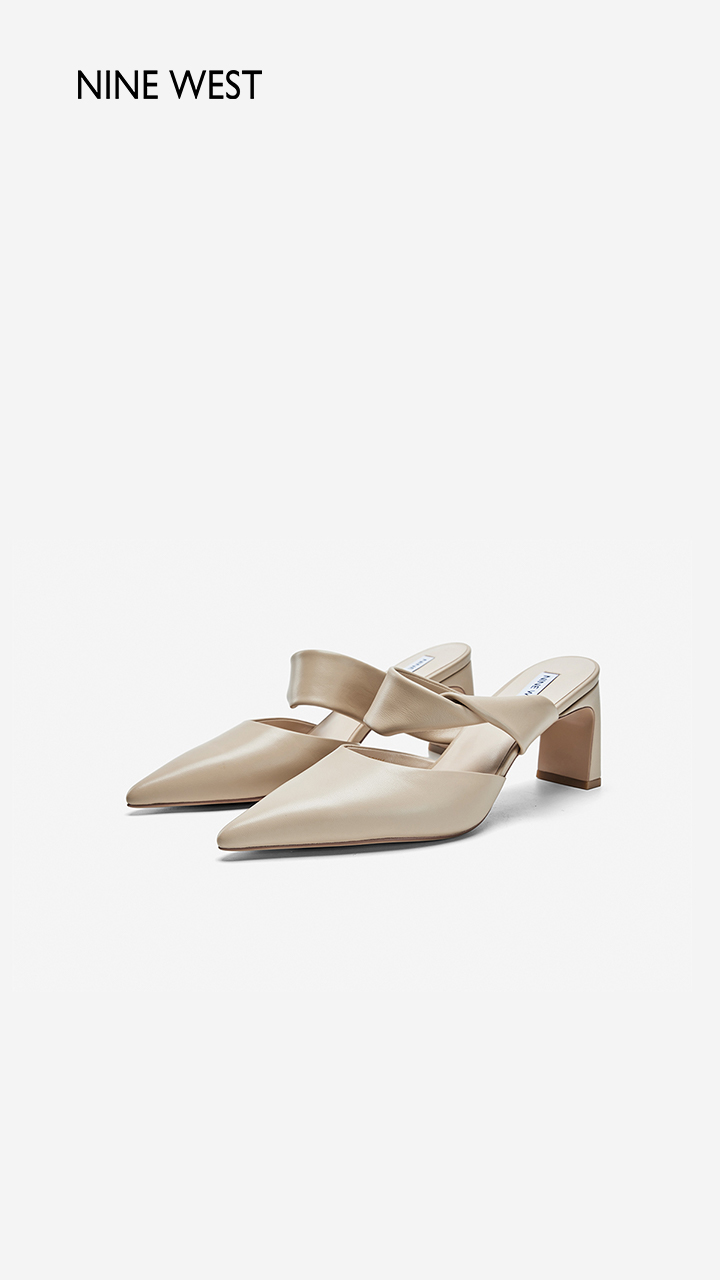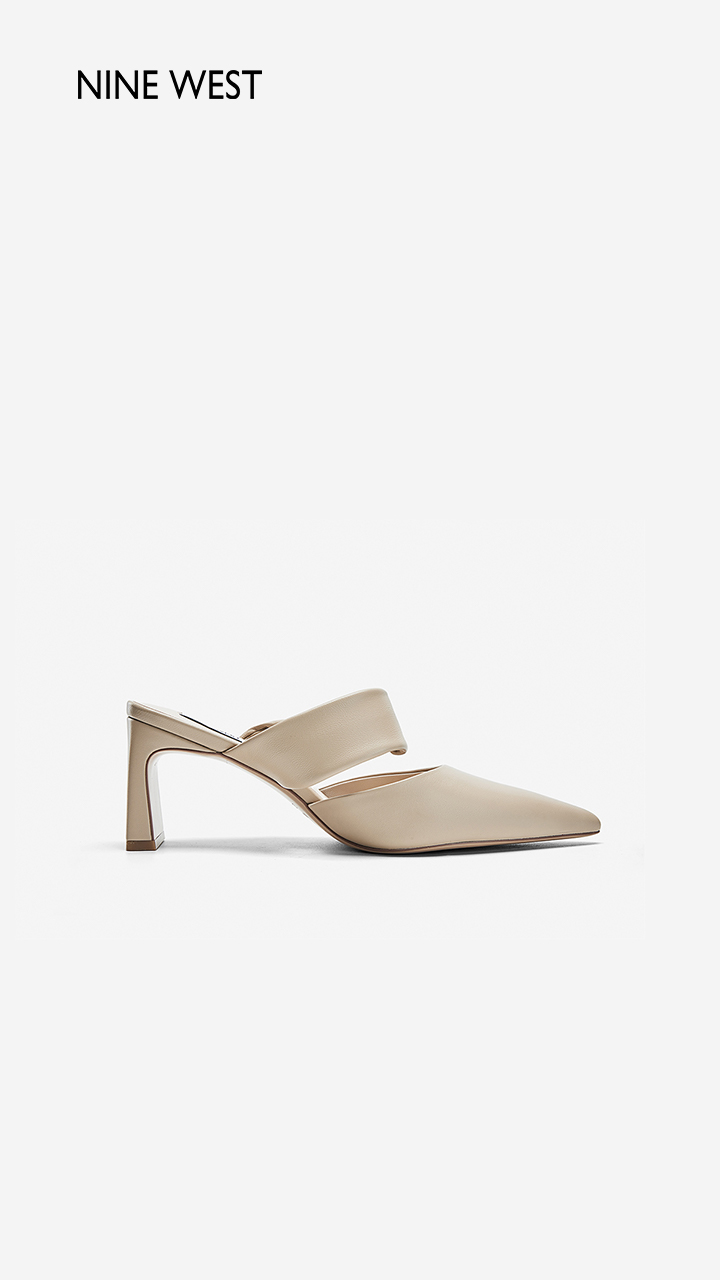 Nine West/玖熙纱河尖头一字带高跟凉鞋2024年夏季新款裸色单鞋女