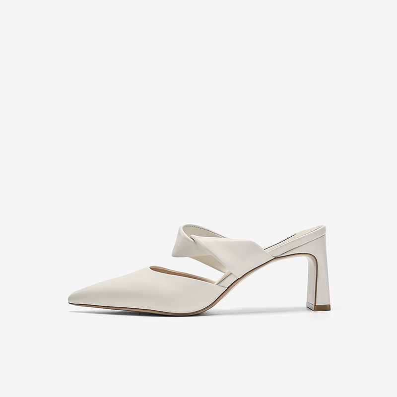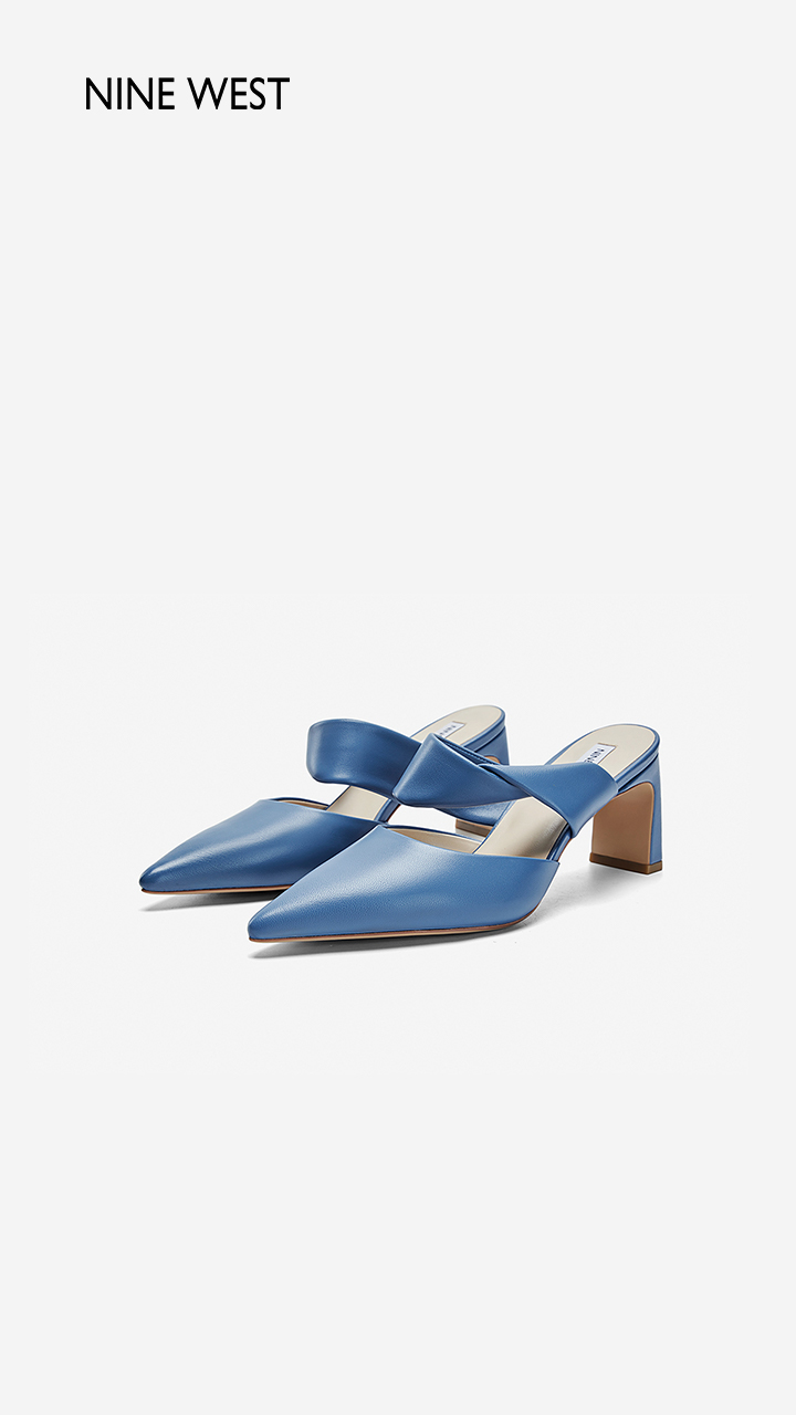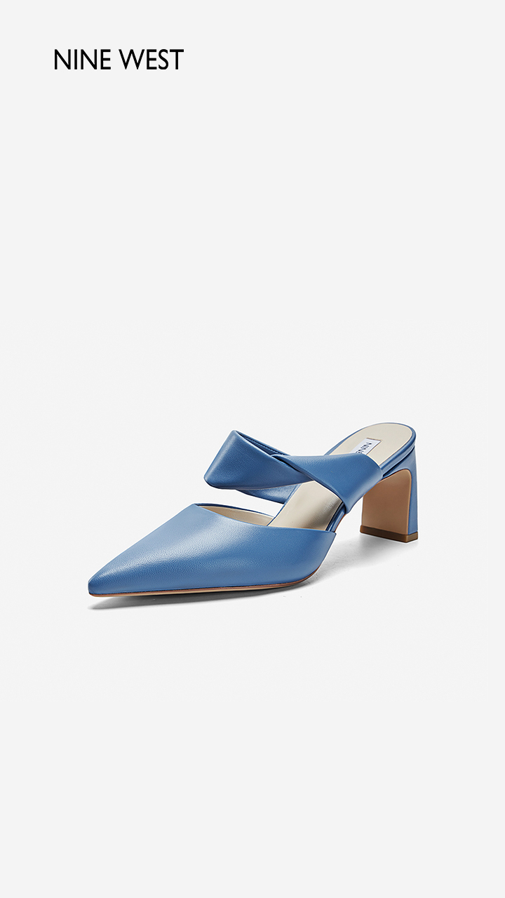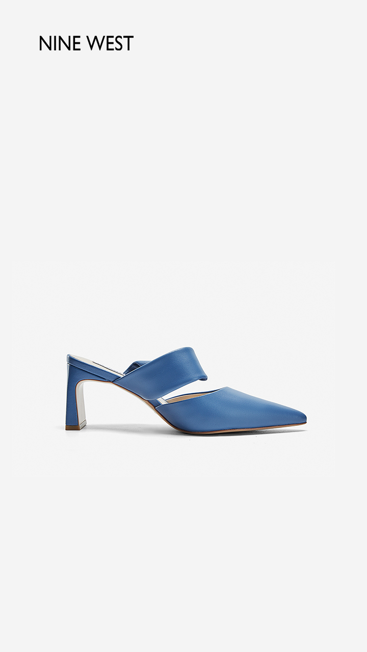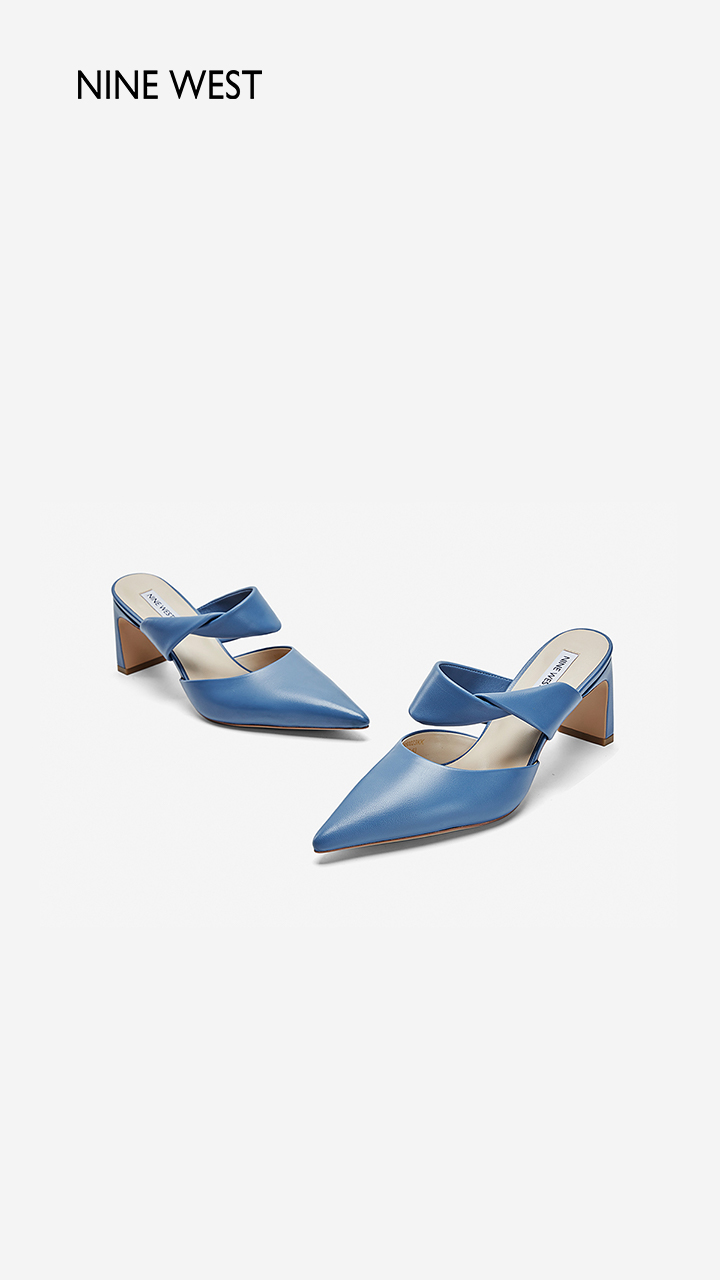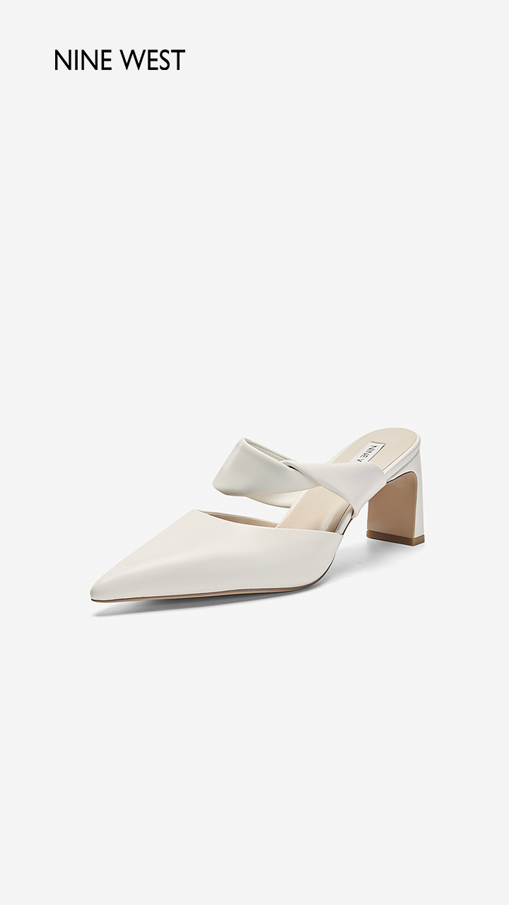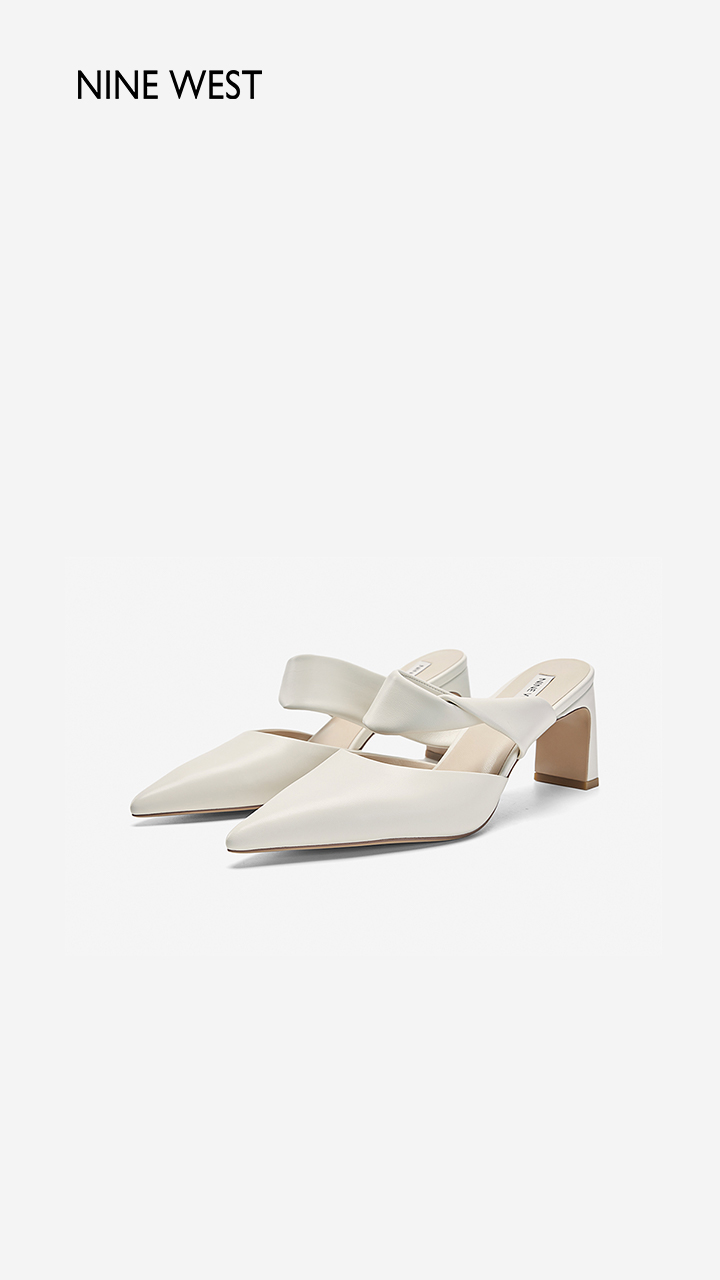 Nine West/玖熙纱河尖头一字带高跟凉鞋2024年夏季新款裸色单鞋女